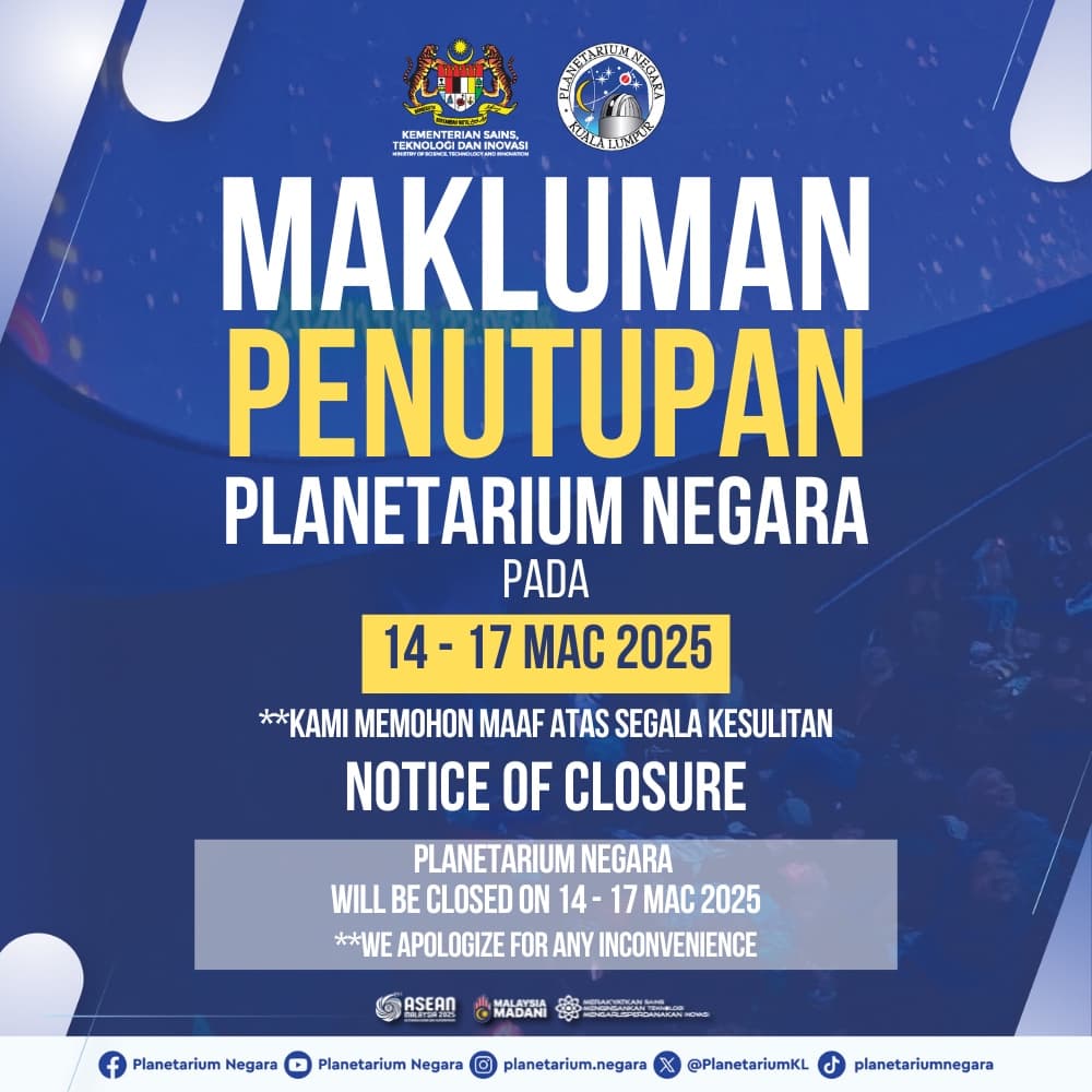 Makluman Penutupan Planetarium Negara (PN) sempena sambutan perayaan Aidil Fitri 2025: